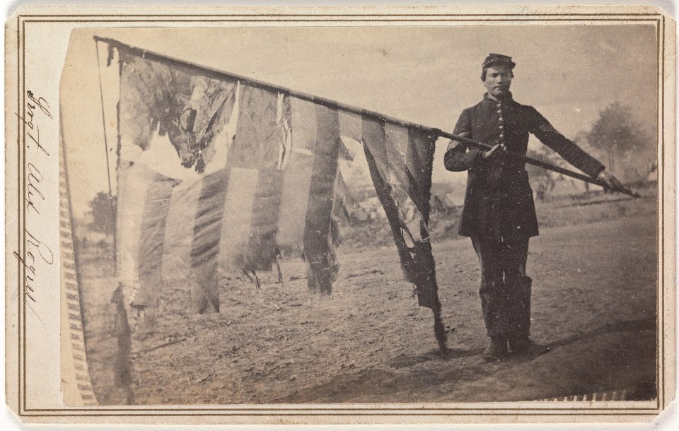 "At the instant, a man broke through my lines and thrust a rebel battle flag into my hands. He never said a word and darted back. It was Corporal Joseph H. De Castro."