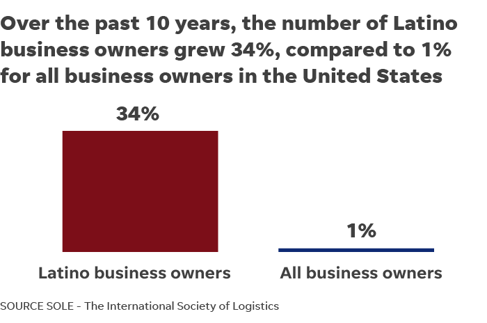 The number of Latino business owners has jumped 34% over the last decade, in comparison to 1% for all other business owners.