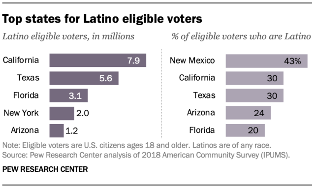 Pew reports that a projected 32 million Latinos will be eligible to vote in 2020, that's more than the nation's 30 million eligible Black voters, and 11 million Asian American voters.