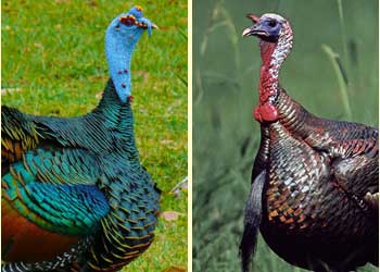 The ocellated turkey is related to its North American cousin, but not the same species.