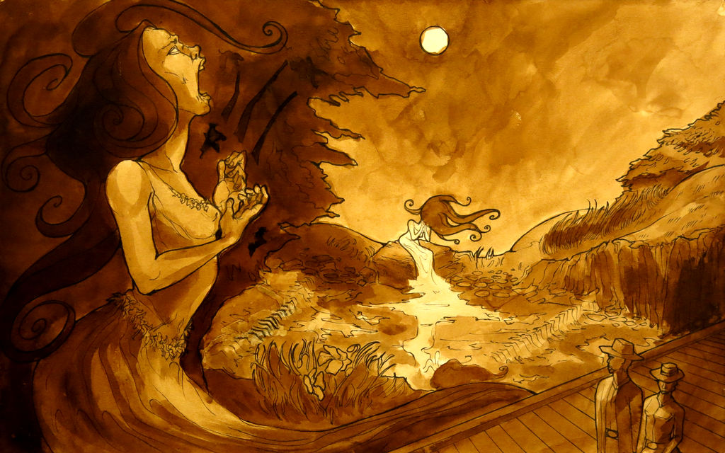 There may be many versions of the story, but in all of them La Llorona's fate is the same. Turned away from the gates of heaven, her soul is cursed, doomed to wander between this world and the next, haunting waterways, hunting for more victims to drown, searching and weeping, always weeping, for the children she lost.